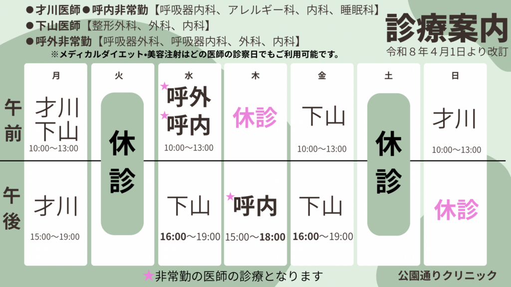 令和8年4月1日(水)より、当院の診療体制・診療時間が一部変更となります。