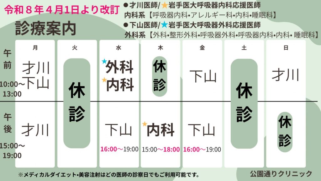 令和8年4月1日(水)より、当院の診療体制・診療時間が一部変更となります。